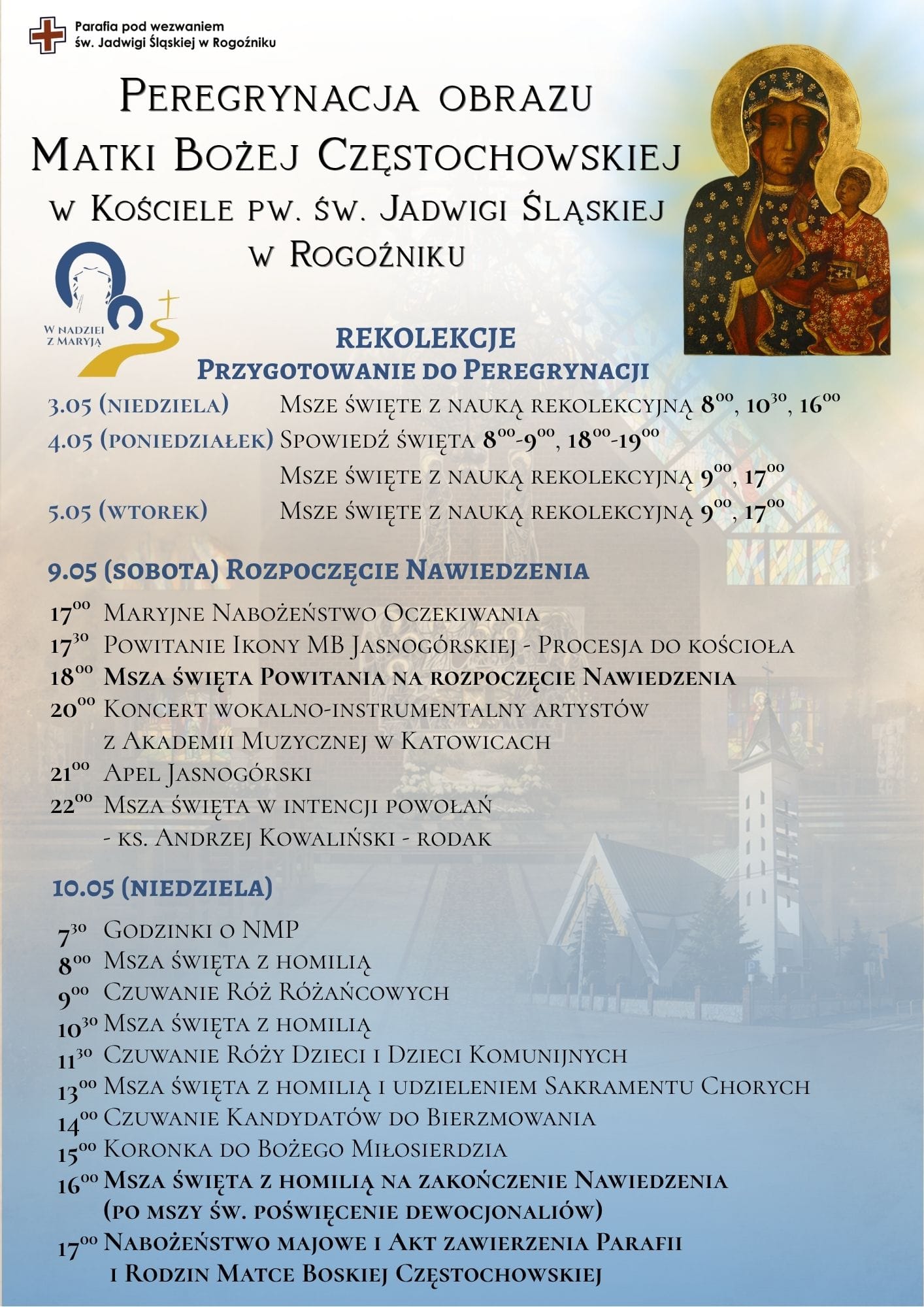 | 5.05 (wtorek) | Msze święte z nauką rekolekcyjną 9:00, 17:00 |